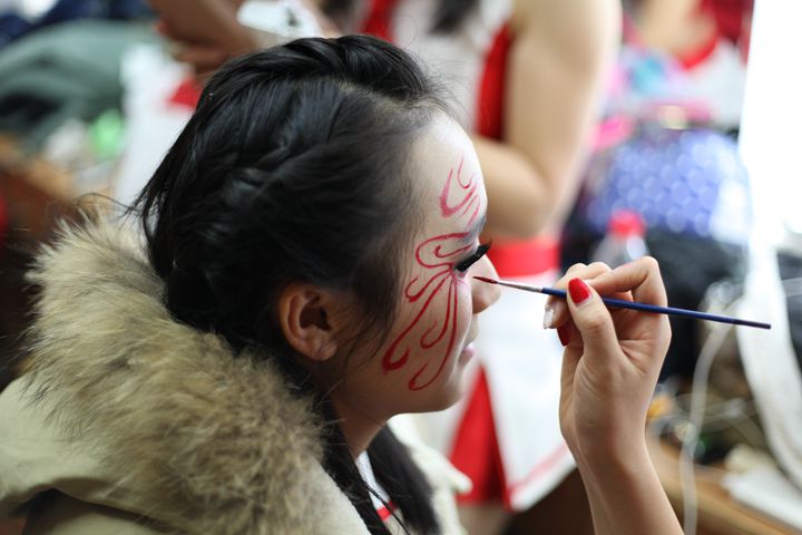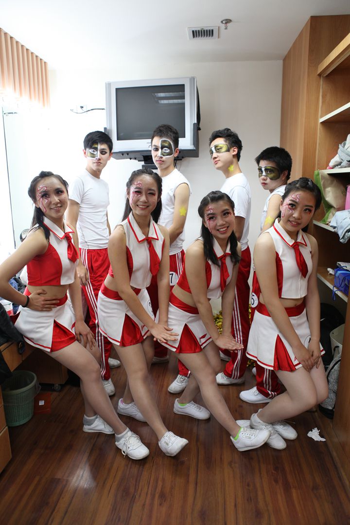 比赛前的准备,队员们在化妆间换上衣服,画上美美的妆,为即将上场的自己加油打气。