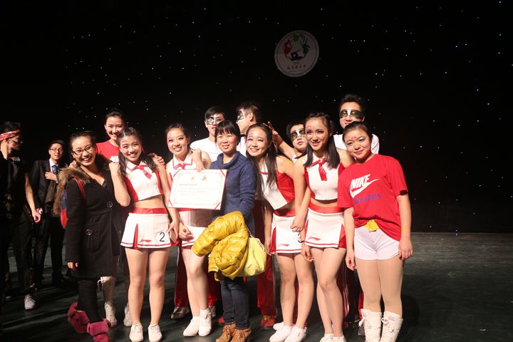 公司的健美操队由2014级的8位青春健儿组成:顾屿、范玖强、石越超、胡廷琼、李思雯、叶津含、于宇潇。两个月来,大家不怕苦、不怕累,在领队的带领下坚持训练。一遍遍的重复那既简单又复杂的动作,只为做到最完美,一次次的排练,只为在舞台上展现最完美的自己。终于,他们走到了这里。