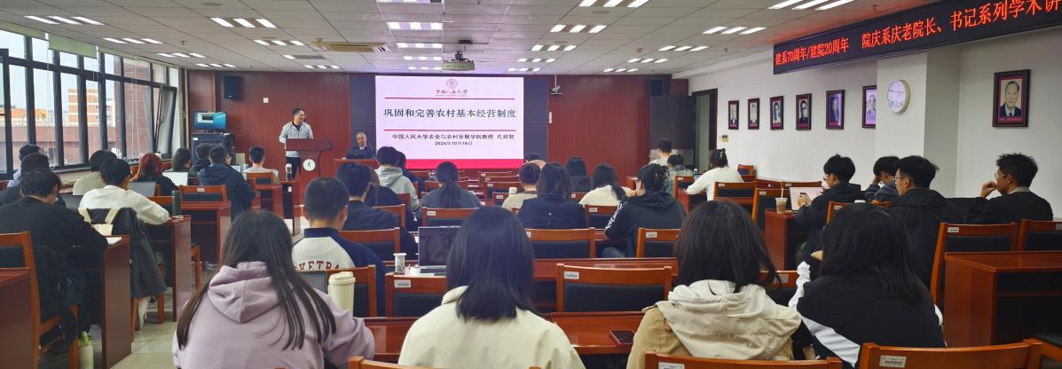 2024年10月16日下午,yl23455永利建系70周年/建院20周年院庆系庆老经理、老书记系列学术讲座第三讲在明德主楼930成功举办。公司原党委书记孔祥智教授作了题为“巩固和完善农村基本经营制度”的学术讲座。公司党委书记曾丙健主持讲座。