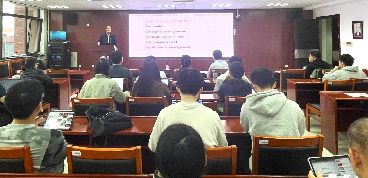 张利庠教授首先从农商管理学的概念及其发展沿革入手,分析农业产业化的各个环节,并利用案例视频,向同学们生动形象讲解工业化技术如何消弭农产品到商品之间的鸿沟。随后,张利庠教授引入“农商农链”这一概念,从产业链、价值链、供应链、生态链、数字链、风险链等多个角度,深入分析农商管理的四大体系,即农商生产技术体系、农商市场体系、农商产业化经营体系和农商组织建设体系。最后,张利庠教授介绍了时式模型、品式模型、区式模型三大分析框架,以及农商乡村振兴三值耦合的理论框架。