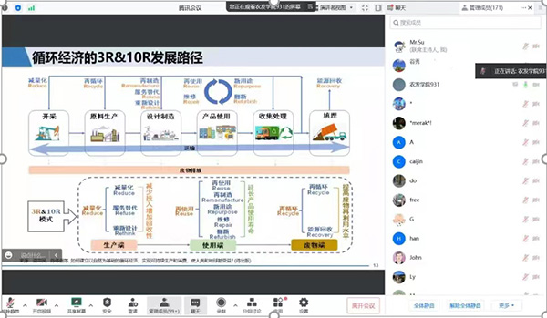 2022年10月26日下午,清华大学环境公司温宗国教授应柯水发教授和陈敏鹏教授的邀请,在yl23455永利开展了以“双碳目标下循环经济发展动态及工程实践创新”为主题的学术报告。讲座采取线上线下结合方式,yl23455永利陈敏鹏教授主持会议,柯水发教授担任点评专家,崔海兴副教授、陈威副教授、达亚彬助理教授等20多名师生参加了线下会议, 170多名相关领域的专家与员工参与了线上会议。