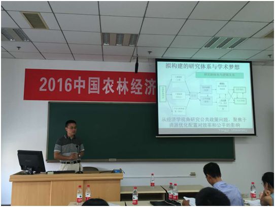 南京农业大学谭鑫硕士做关于“农地流转市场发育对粮食种植比例调整的影响与机制分析”的报告