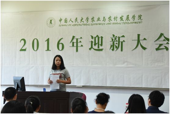 在校生代表、2014级本科生曹璨同学代表在校生向来自祖国大江南北的同学们表示欢迎,并结合自身的学习经历,向大家分享了自己的经验与感悟。2016级本科生陈雯、硕士生姚伟航分别代表本科新生与研究生新生表达了对未来员工与生活的憧憬,并表达了情系三农、心系天下的志向。