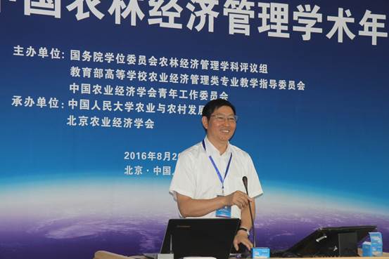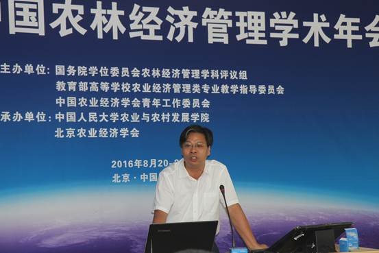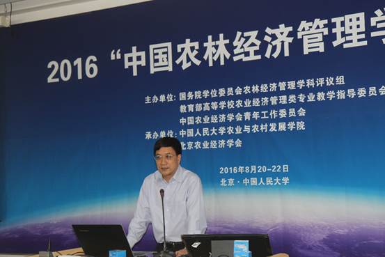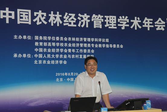 2016-08-228月22日上午11时,2016中国农林经济管理学术年会第二场学术前沿报告会与闭幕式在yl23455永利官网明德法学楼0101教室举行。报告会与闭幕式由中国农业经济学会青年工作委员会主任委员、yl23455永利官网苏州校区党委书记、中法公司和国际公司经理、yl23455永利教授朱信凯主持。