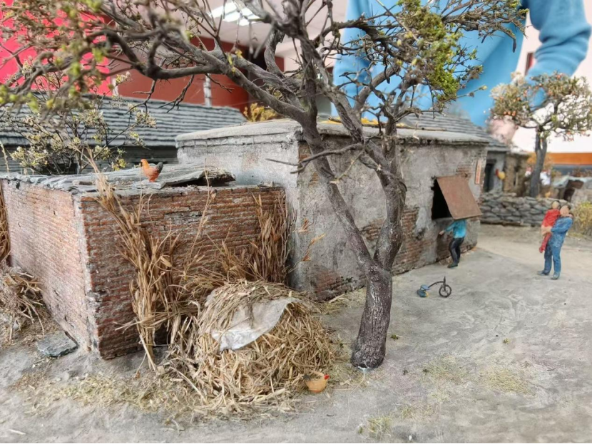在主题分享环节,李义中以“乡愁与文化传承”为切入,指出乡村物理空间的消逝往往伴随集体记忆的断裂与文化认同的危机,许多作为家族精神与文化传承载体的乡村空间正在从地图上消失,导致人们情感难以安放、乡愁失去寄托。他通过一系列微塑作品,生动呈现了这种危机下的“塑形与塑魂”:他的作品既有北京四合院、福建土楼、陕北窑洞等各地特色建筑,也有济南老火车站、毛泽东故居等具有时代与纪念意义的空间,更有江苏农村院子、广东老街、广州骑楼、山东村头、河北农家院等承载普通人生活记忆的场景。这些方寸之间的微塑作品,让人们在多年后重新遇见“记忆中的故乡”。随后,他回顾了自己从雕塑走向微塑的艺术成长路径,尤其是2020年一件山东农村题材作品在短视频平台“爆火”的经历:一方面源于作品在尺寸对比上的强烈视觉冲击,另一方面则是作品背后所承载的乡愁唤起了广泛共鸣,折射出当下社会对乡土记忆与精神家园的集体关切。