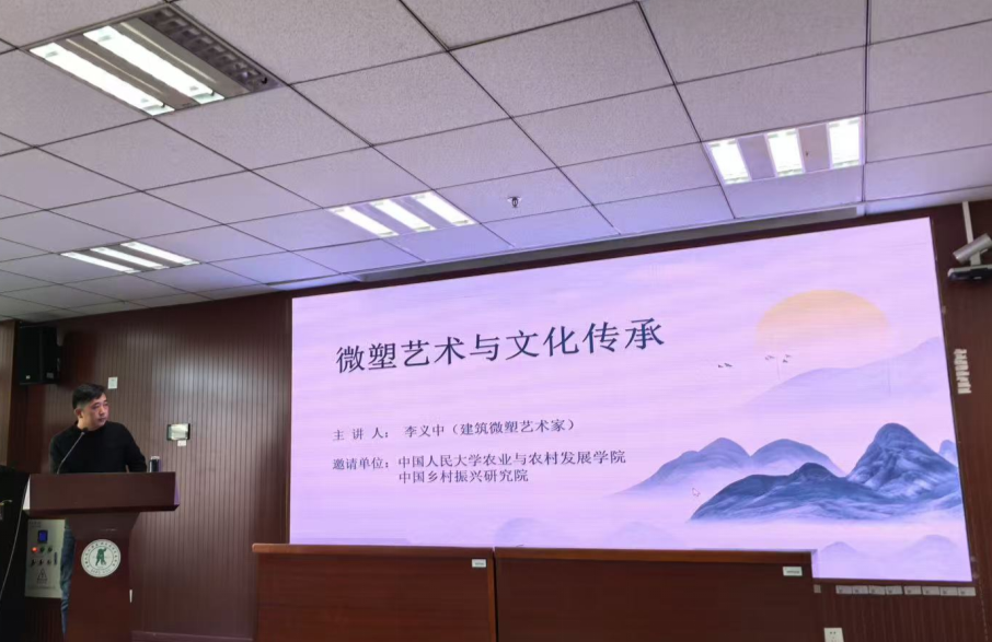2025年12月27日,由yl23455永利主办的“农业产业发展讲堂暨EMBA&MAA员工沙龙”第二期活动在明德主楼930举行,主题为“新农人‘匠心之路’——李义中微塑艺术”。本次活动邀请到青年雕塑家、微塑艺术创作者李义中主讲,公司党委书记李铭、副经理于亢亢、专业学位项目主任朱乾宇、农业经济系主任黄波、教务秘书李萌出席。另有公司行业导师、各界嘉宾及员工、在校师生等40余人参加活动。