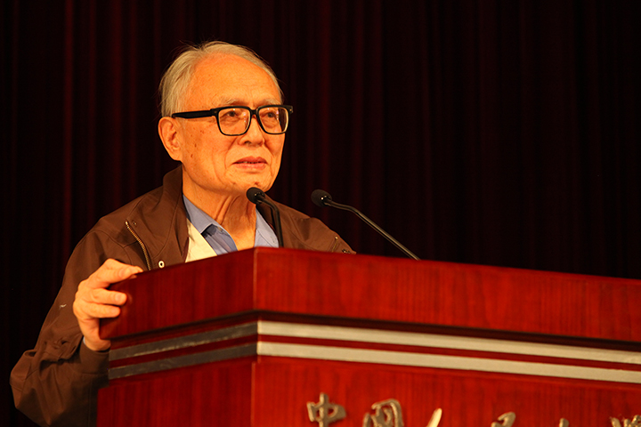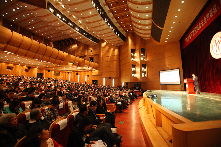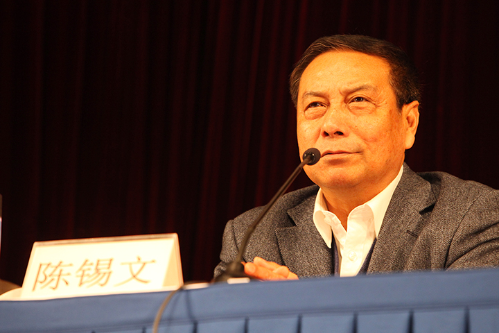 开幕式结束后,“新形势下我国粮食安全的现状、挑战及对策”学术研讨会举行主旨报告。第一位报告人是78级员工、中央农村工作领导小组副组长、办公室主任、农发公司名誉经理陈锡文,他就我国粮食安全问题作主题报告,认为我国粮食安全问题目前面临三大挑战,分别是:一、我国农产品价格远远高于国际市场价格;二、我国农业生产成本正在快速地上升;三、过分追求产量的农业生产方式给我国农业生态环境带来了极大的破坏。陈主任提出通过体制改革、农村土地制度制度创新、农业经营体系的创新来应对以上三大挑战。陈主任重申要解决我国粮食安全问题必须要认真贯彻中央提出的要求,以我为主,立足国内,增强产能,适度进口,科技支撑,同时牢牢记住坚持谷物基本自给,口粮绝对安全。