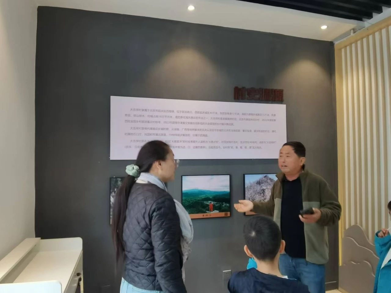 11月2日下午,董筱丹副教授一行首先来到延庆区四海镇大吉祥村,在大吉祥村党支部书记葛良的介绍下考察了四海镇红色文化教育基地。大家通过考察村史展览里的乡情村史陈列室、四海镇革命历史馆和新时代研习所,沉浸式体验了大吉祥村红色历史。大家在接受党性教育的同时,也提出了契合村庄发展的可行意见和方案,为弘扬四海镇光辉的革命历史、探索乡村建设和红色文旅助力乡村振兴贡献人大智慧。大家切身感受到了在中国共产党领导下京郊农村七十多年来的深刻变迁和以中国式现代化推进乡村全面振兴的生动实践。